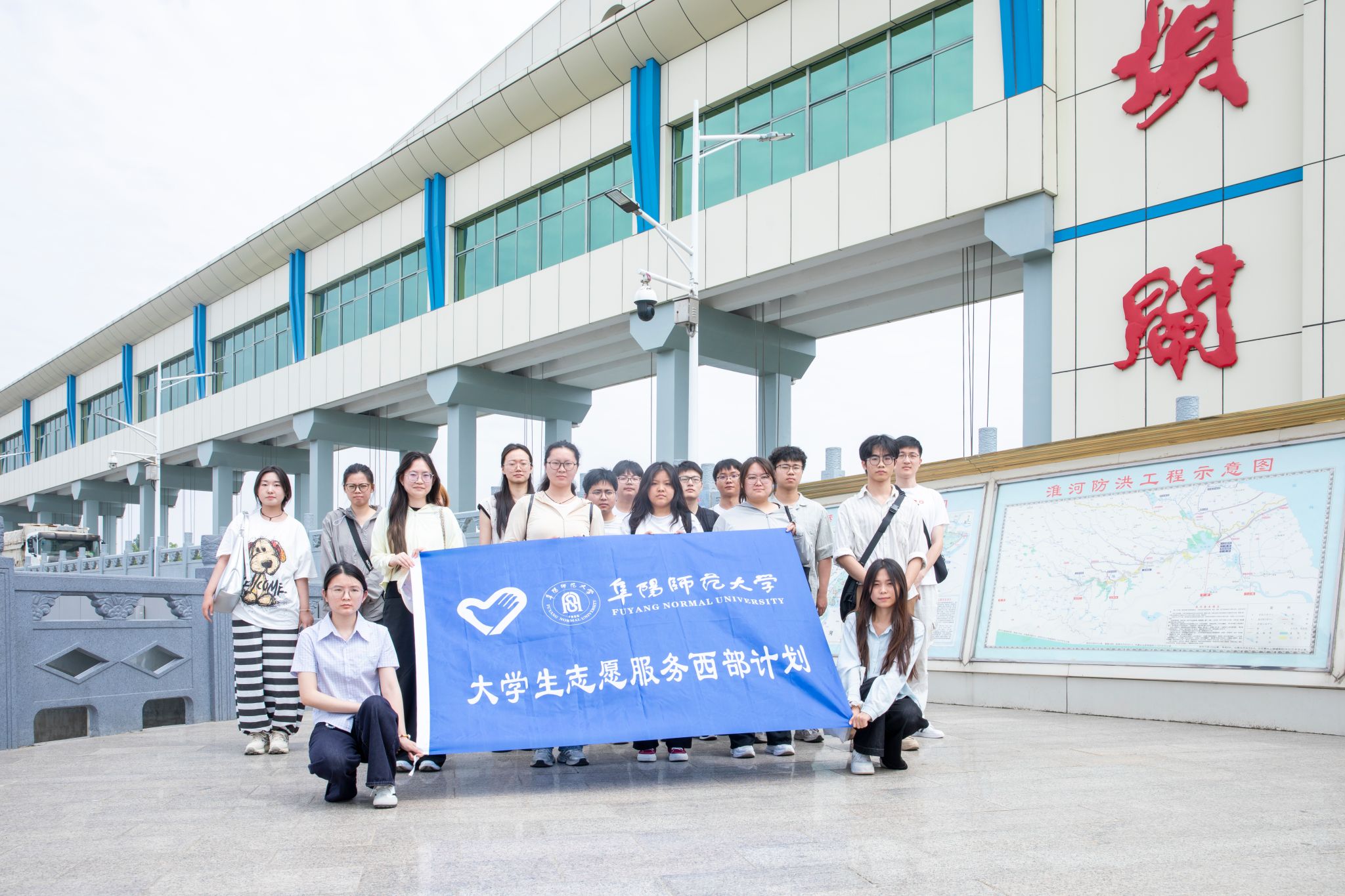 开展实践学习,增强服务基层的使命感。6月5日,校团委组织西部计划志愿者赴王家坝青年培训基地开展实践学习,帮助志愿者们厚植家国情怀,增强服务基层的使命感。志愿者们首先参观全国爱国主义教育示范基地“千里淮河第一闸”王家坝闸。通过闸口建设历程讲解与防汛历史回顾,直观感受王家坝闸在守护淮河安全中发挥的战略意义。在王家坝抗洪纪念馆,志愿者们依托馆内陈列的历史资料,系统学习蒙洼地区抗洪救灾历史脉络,深刻领会“舍小家、为大家”的王家坝精神内核,对蒙洼人民顾全大局、无私奉献的伟大品格产生强烈共鸣。在红亮箱包厂教学点,志愿者们深入生产车间,通过讲解员的介绍,详细了解乡村就业促进机制及“家门口就业”模式对巩固拓展脱贫攻坚成果、助力乡村振兴的实践成效。志愿者们实地参观了西田坡庄台等基地深刻感悟“临水而兴、人水和谐”的乡村振兴光明前景。