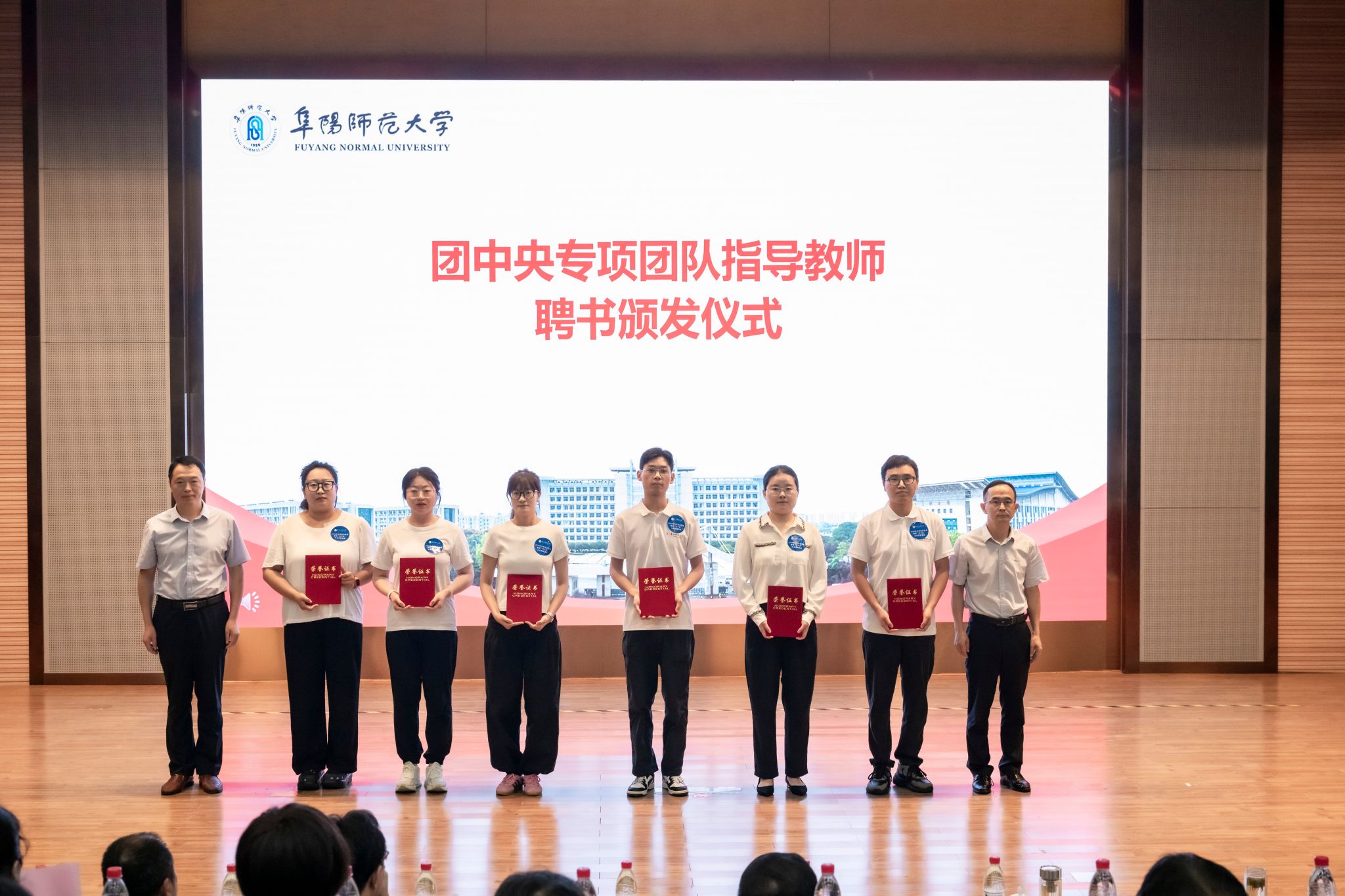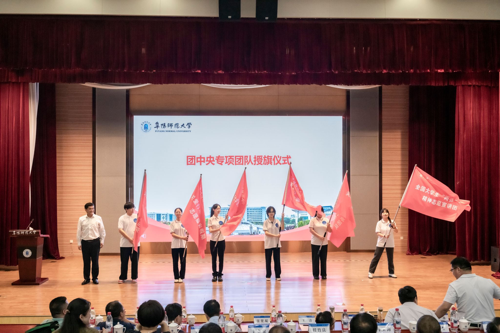 旗帜是引领,也是承诺,激励着青年学子投身基层,书写新时代的奋斗篇章。仪式上,窦贤琨和有关职能部门负责人分别为校级重点团队指导教师代表、团中央专项团队指导教师颁发聘书,为校级重点团队代表、团中央专项团队授旗,为西部计划志愿者赠送了纪念品。