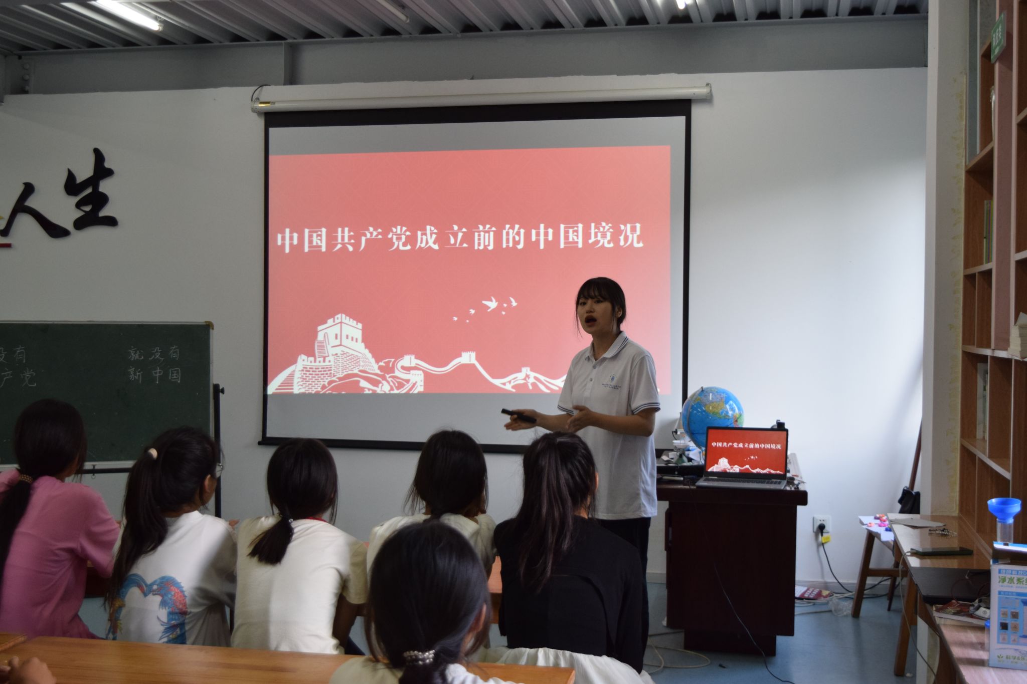 实践团队以“扣好人生第一粒扣子”为指引,将红色教育融入乡村儿童成长轨迹。戴尧村开展“我是小小护旗手”系列活动,以正步走训练、升旗仪式等沉浸式体验培育学生爱国情感;冯庙村通过走进烈士陵园、爱国主义主题宣讲、集体观看红色影片等活动,让孩子们在历史场景中触摸初心;姜饭棚村聚焦“七七事变”历史宣讲,用史料故事唤醒青少年责任意识;葛寒寨村开设“党史课堂”我来说,以生动形式让红色基因浸润童心。多维度活动串联起革命精神传承链,引导青少年争做红色基因的守护者与践行者。