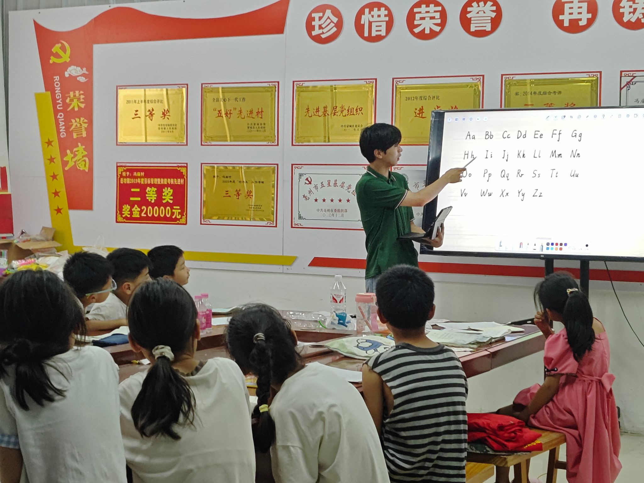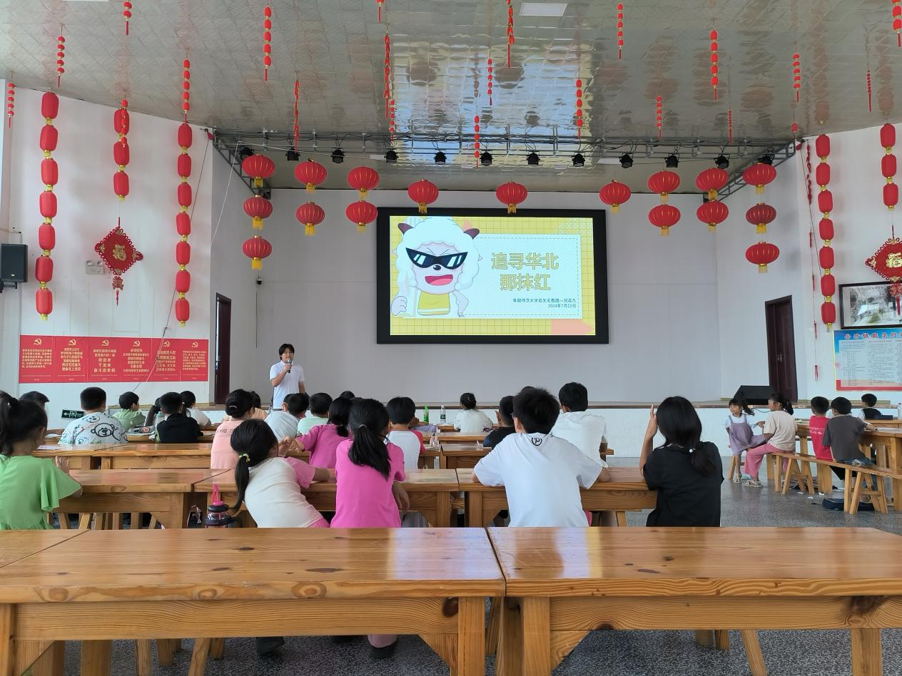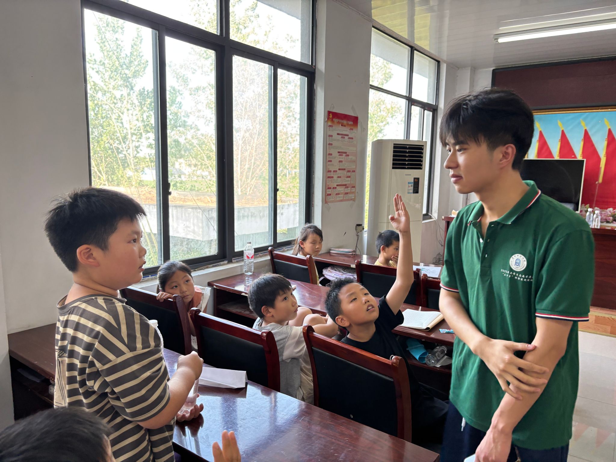 实践团队围绕学业提升与能力拓展,在4个村构建分层递进的智育体系。以暑期作业辅导为基础,姜饭棚村创新“德、智、美”三维课程,开设语文诗歌朗诵会、数学趣味算数竞赛、英语单词闯关游戏,搭配天文科普讲座拓宽知识边界;葛寒寨村重点围绕普通话推广,通过日常对话训练、情景短剧表演助力语言融合;戴尧村融入趣味物理小实验;冯庙村开设英语启蒙课堂,让知识传授兼具科学性与趣味性,切实提升乡村儿童的英语学习能力与综合素养。