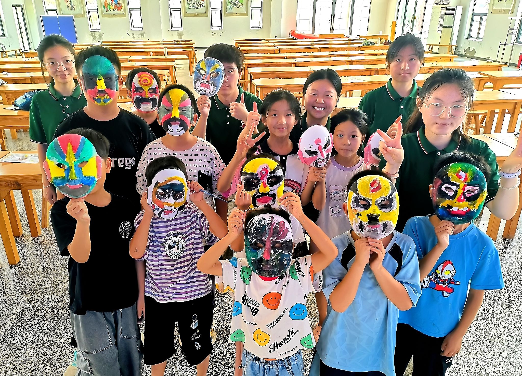 实践团队深挖地方非遗资源与传统工艺,打造“手工实践+文化感知”的美育课堂。戴尧村开展戏剧脸谱绘制、漆扇工艺体验,让孩子们在色彩调配中领悟戏曲文化;姜饭棚村组织团扇绘画、石膏娃娃涂色,用画笔勾勒传统美学;葛寒寨村教授书签制作、简笔画创作等,以小巧载体传递艺术温度;冯庙村开设陶瓷娃娃彩绘课程,让童趣与匠心碰撞。扭扭棒编花、超轻粘土塑形等手工活动遍布4个村,孩子们在指尖创作中感受美、表达美,让中华优秀传统文化在实践中代代相传。