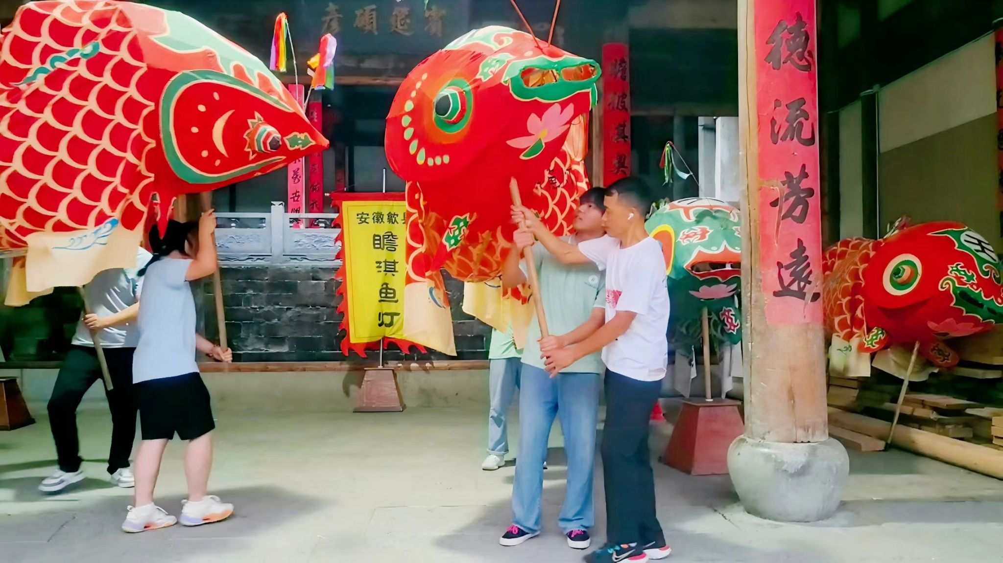 各学院实践团队深入传统村落与工坊,聚焦数字化传承与工艺提质,积极探索“科技+非遗”融合新路径。他们以专业力量助力非遗活态传承与传播,为传统文化注入时代活力。计算机与信息工程学院“智绘鱼灯 歙韵研创”实践团队赴安徽省黄山市歙县瞻淇村,实地探访非遗工坊与传统工艺流程,深入了解鱼灯文化在历史传承与当代转化中的困境与机遇。成员们沉浸式学习鱼灯制作技艺,开展图像采集与数字化建模,设计文化创意手册、伴手礼包装及《瞻淇鱼灯》纪录片的后期制作,探索“非遗+数字化”融合路径,助力“科技点亮非遗”;生物与食品工程学院“文以兴乡”志愿服务团走进阜阳市太和县张龄剪纸工作室,协助传承人搭建“普通话+非遗”直播平台,围绕剪纸制作过程中的原材料改良、色彩稳定性等环节提供技术支持,以专业所长助力非遗工艺提质升级,同时通过线上讲解与互动展示,推动地方文化“活”起来、“火”起来,在指尖技艺中弘扬中华优秀传统文化;法学院“颍淮匠心,塑动未来”实践团深入探访非遗面塑传承人高光彪,体验并记录面塑技艺。队员们与传承人深入探讨,提出了包括开发国潮文创、设计盲盒、开设体验馆、利用直播和虚拟技术扩大宣传、加强知识产权保护在内的一系列“年轻化”创新方案,实现了传统技艺与青春创意的精彩碰撞。