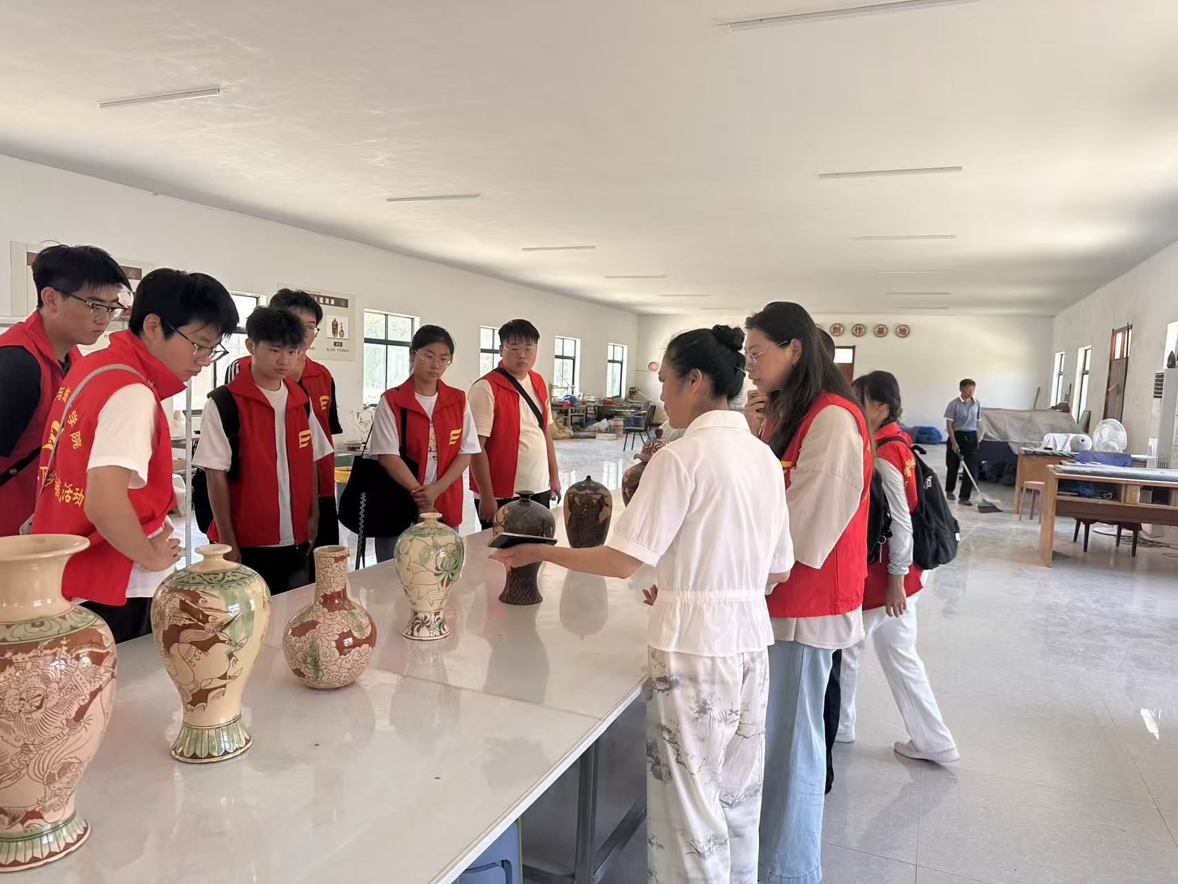 各学院实践团队深入阜阳乡村与工坊,系统挖掘、记录并传播多项非物质文化遗产。他们以专业视角探访传承现场,体悟匠心技艺,积极为推动非遗的现代转化与创新建言献策。文学院“非遗童创”社会实践团队深入阜阳田间地头,开展为期两周的“非遗”项目实地调研。团队聚焦颍上花鼓灯、阜阳剪纸、黄岗柳编三大非遗,通过走访传承人、企业、村民及体验技艺,探索“非遗+文旅”融合路径,以青年实践助力乡村振兴;数学与统计学院“云霓剪彩·华章筑梦队”深入阜阳市颍州区、颍东区及界首市,走访界首彩陶、杜氏刻铜、阜阳剪纸传承现场,以数理思维赋能非遗传承调研,为传统技艺寻找当代活化路径;大学生记者团“碧野新声”暑期“三下乡”社会实践团深入安徽省黟县碧山村,聚焦“探寻碧山村乡村振兴发展路径”主题,通过实地考察、座谈访谈与走访调研,实地调研了这座兼具深厚文化底蕴与现代艺术活力的古村落,在乡村振兴大潮中的创新探索与成功经验。