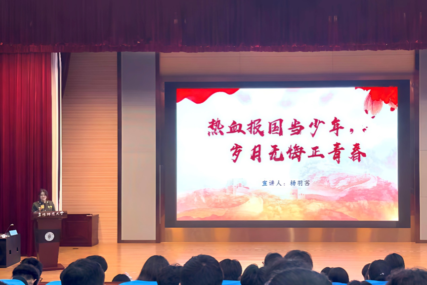 “八一社”的杨雨茜、张荏苒、王子若、吴浩四位同学分别结合自身军旅经历,从不同角度、不同层面,生动讲述了他们退役不褪色、建功新时代的奋斗事迹,详细阐释了国防建设与个人成长的紧密联系,细致讲解了征兵流程和退伍政策,号召新生同学珍惜学习时光,加强政治理论学习,积极投身爱国实践,努力实现爱国认识与爱国实践的协调发展。