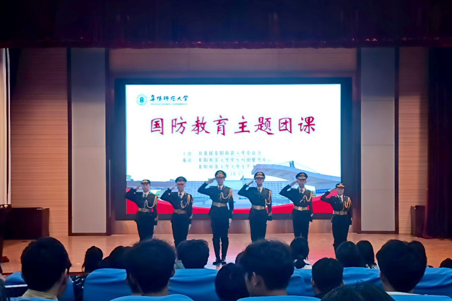 为充分挖掘学生组织和退役大学生士兵的朋辈教育优势,深入推进新生爱国主义教育和国防安全教育,10月15日晚,阜阳师范大学团委组织大学生艺术中心国旗护卫队和学生社团“八一社”,面向新生开展国防教育主题团课。该校团委副书记戴亮和学校2025级各班级团支部学生骨干代表300余人参加观摩主题团课。
