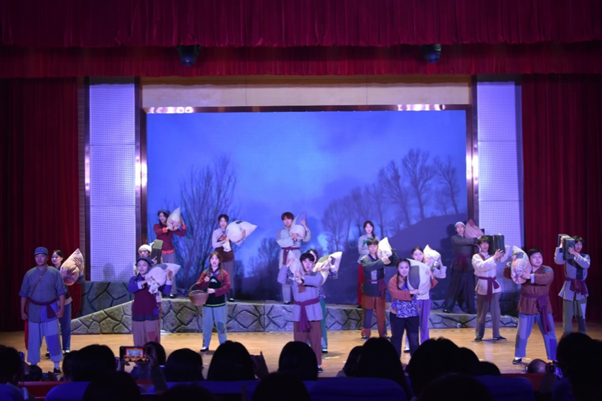 歌剧《向前》“以点带面”描绘了淮海战役期间男女老幼齐上阵、家家户户支前忙的生动画卷,还原了淮海战役中军民水乳交融、生死与共的壮观历史场景和车轮滚滚、川流不息的淮海战役场面。整部剧以青年淮山报名支前为主线,刻画了淮海战役里千万群众踊跃支前的群像,“军民团结如一人” 的深厚情谊贯穿始终,真实还原了那段军民团结、生死与共的峥嵘历史。演员们精湛出色的演技和激昂嘹亮的歌声赢得了现场观众的热烈掌声,让每一位观众都仿佛回到了军民同心、生死与共的历史场景,深刻感悟到“小推车精神”的丰富内涵和时代价值。