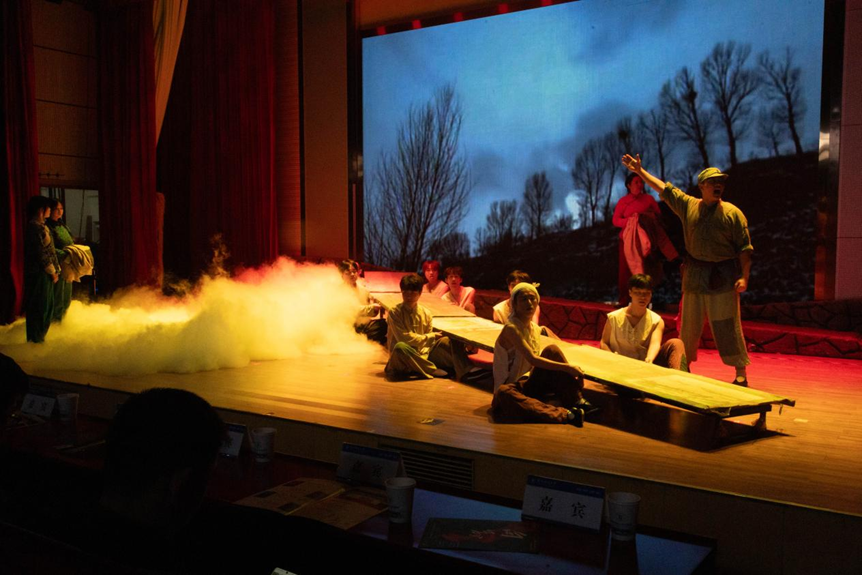 11月13日晚,由安徽省教育厅主办、淮北师范大学承办的2025年高雅艺术进校园活动原创歌剧《向前》专场演出在我校西湖校区正行楼二楼报告厅举行。淮北师范大学党委常委、副校长檀竹茂,我校党委常委、副校长卢少求出席活动,淮北师范大学音乐学院有关负责人及我校党政办公室、党委宣传部、学生工作处、研究生处、安全管理处、校团委及音乐舞蹈学院等相关单位负责人与600余名师生代表共同沉浸式观看演出。