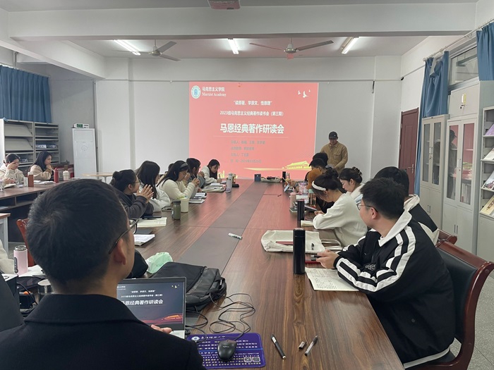 为提高研究生阅读经典著作的自觉性,提高对著作的重视程度,增强对著作的理解与认识,3月26日,马克思主义学院团委举办与信仰对话——经典著作读书会。陈曦、王雅、张梦媛三位同学分享汇报读书成果,丁志豪同学主持,2023级全体研究生参与读书会,韩旭老师莅临指导。