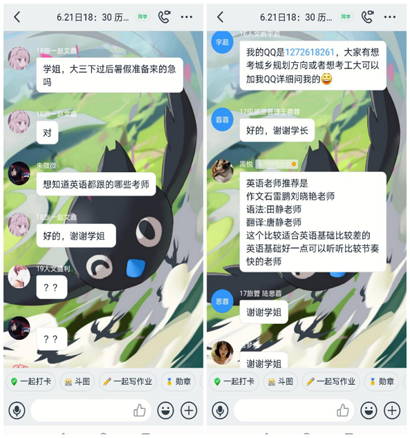 为进一步提高我院学生的考研热情,营造良好考研氛围,帮助2017级本科生更好地了解考研形势,完善考研计划,调整复习方法,6月22日晚上6:30,历史文化与旅游学院组织召开了线上考研经验交流会。本次交流会邀请我院2020届毕业生中考取南京大学、暨南大学、合肥工业大学等重点高校的九位同学做交流,我院2017、2018及2019级共计500余名同学参加此次交流会。