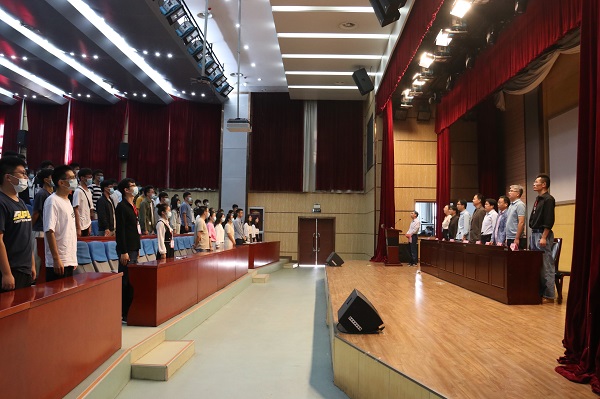 2020年9月26日上午8点30分,化学与材料工程学院在西湖校区正行楼报告厅,举行2020级新生开学典礼暨入学教育仪式。化学与材料工程学院党委书记马健、院长盛良全、副院长陈水生,以及各专业教研室主任、全体辅导员、2020级本科生和研究生出席典礼,典礼由陈水生主持。