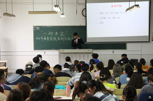 为进一步加强同学们对考研知识和经验的了解,营造积极向上的学风,促进同学们考研激情,增强同学们考研的信心和决心。体育学院于4月28日下午4:20教学主楼113教室举行考研经验分享会。