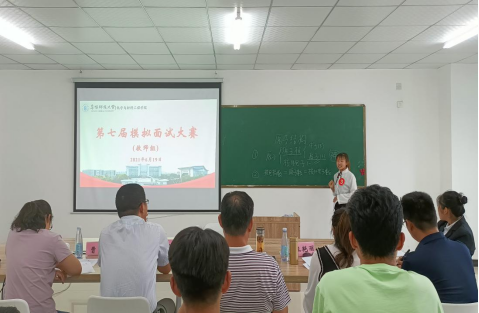 为引导大学生进一步明确职业目标定位,合理规划职业生涯发展路径,实际了解求职面试全过程,积累临场应变经验,提升求职面试技巧与能力,2021年6月19日,化学与材料工程学院在西湖校区新化学楼学术报告厅、教法实验室举办第七届模拟面试大赛。学院党委书记马健、党委副书记田志坚,天能电池人力资源部经理赵正民,阜阳师范大学附属中学教师廖全林,苗慧博士及全体辅导员担任评委。