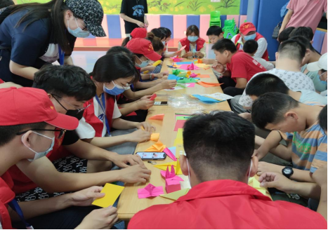 来到学校后,学校老师对志愿者们的到来表示热烈欢迎,并简要介绍学校的基本情况以及需要注意的事项。随后,志愿者们以小组为单位,用唱歌、跳舞、折纸、涂画等方式拉进与孩子们的距离。在互动交流中,大家相处融洽,现场一片欢声笑语,其乐融融。活动最后,志愿者们向每一个孩子派发糖果和零食,并一起合影留念。