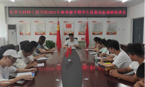 为及时了解返校学生思想动态,增强新学期学生教育管理的针对性和实效性,2021年9月7日,化学与材料工程学院在西湖校区理科教学综合楼C207会议室召开秋季新学期学生思想动态调研座谈会。学院团委负责人董淳一主持会议,各年级25名学生代表参加本次座谈会。