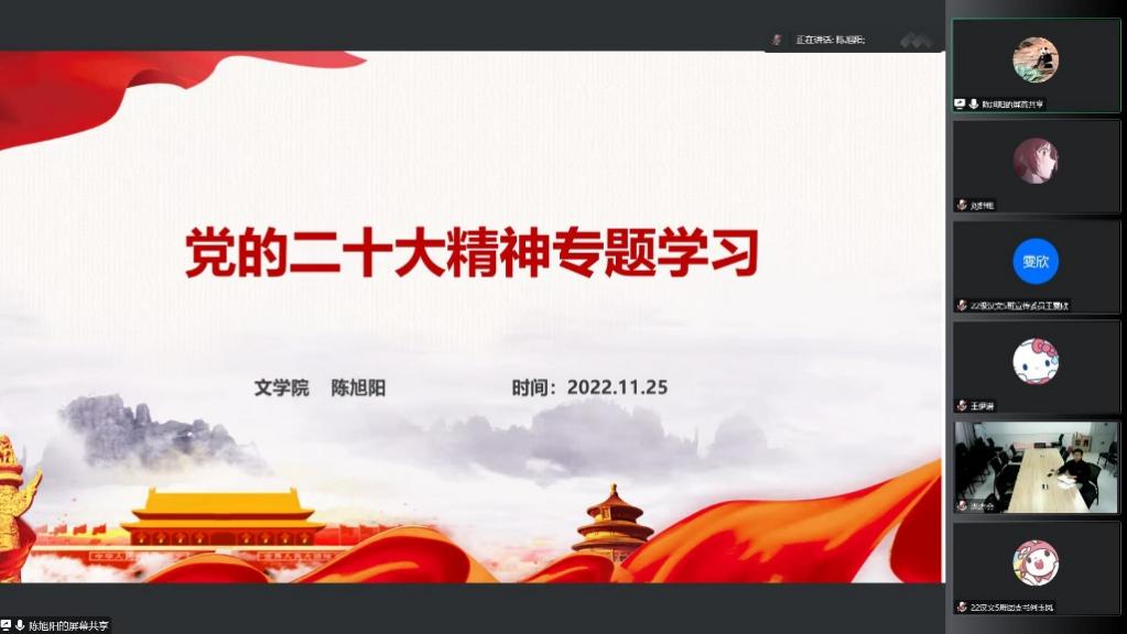 为深入学习宣传党的二十大精神,提高广大学生骨干的思想政治素质与理论水平,11月25日上午,文学院举办党的二十大精神宣讲暨“青马工程”开班仪式。文学院党委书记陈旭阳、分团委负责人尚志会及全体青马班学员参会。