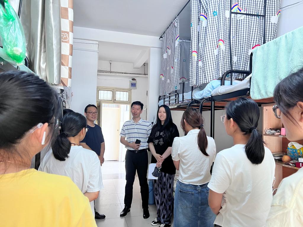 以心迎新,温暖到寝。9月9日,为深入了解新生宿舍生活需求,帮助新生更快适应大学生活,生物与食品工程学院党政领导与新生辅导员深入走访新生宿舍,为同学们送去关心与问候。走访察看过程中,学院领导亲切询问了新生们的生活情况,提醒并解决寝室内部安全问题,并给予他们一些今后学习和生活的建议。通过走访宿舍,学部领导和老师进一步了解了2023级新生的情况以及实际需求,增强了师生间的信任感和有效互动,为学部日常管理工作的稳步推进打下良好的基础。