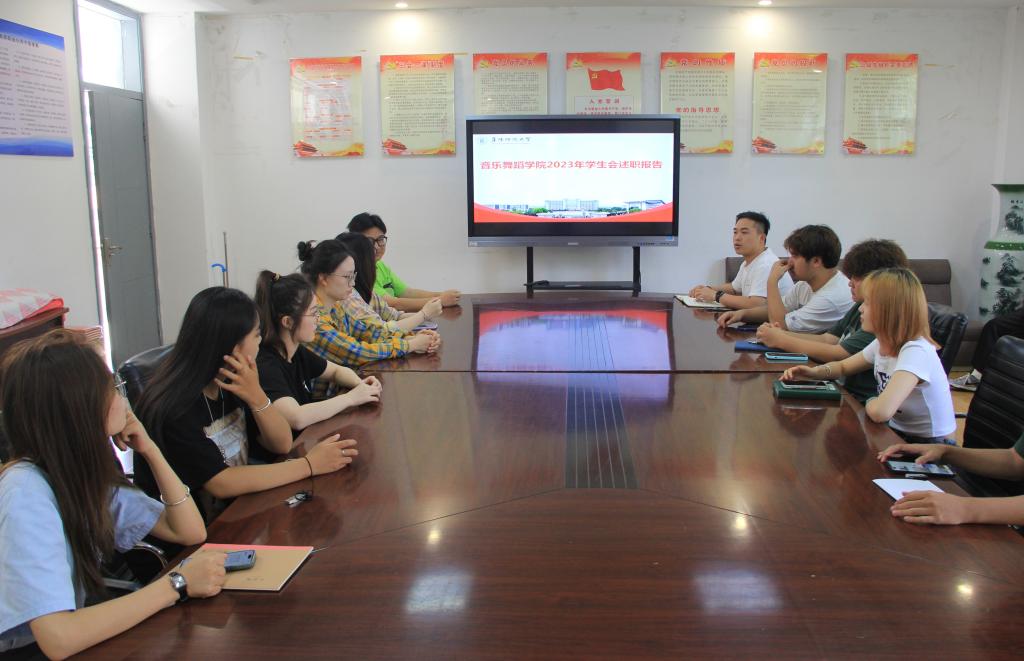为进一步激发学院学生会组织活力,充分挖掘学生组织的先进典型、总结交流经验,9月15日,音乐舞蹈学院学生会于韶华楼203会议室召开2022-2023学年第二学期学生会干部述职评议交流会,学院团委负责人薛程文、学生会各部门成员以及各年级学生代表参会。会议由薛程文主持。