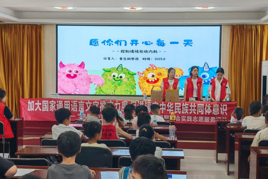 近日,马克思主义学院“普声筑梦团”实践队一行9人深入三合镇三星村开展志愿服务活动,此次实践由教育部语言文字应用管理司、共青团中央青年发展部共同发起组织的“推普助力乡村振兴”全国大学生暑期社会志愿服务活动。队员们带着精心筹备的课程与工具,通过趣味教学、场景模拟、文化互动等多元形式,让普通话真正走进乡村课堂、融入田间地头,帮助当地群众架起一座连接外界的“语言桥梁”。