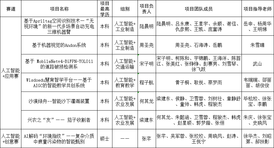 根据《关于组织推报“挑战杯”全国大学生课外学术科技作品竞赛“人工智能+”专项赛的通知》相关要求,经团队自主申报、审核评议,拟推报以下7项作品参赛。推荐项目名单如下: