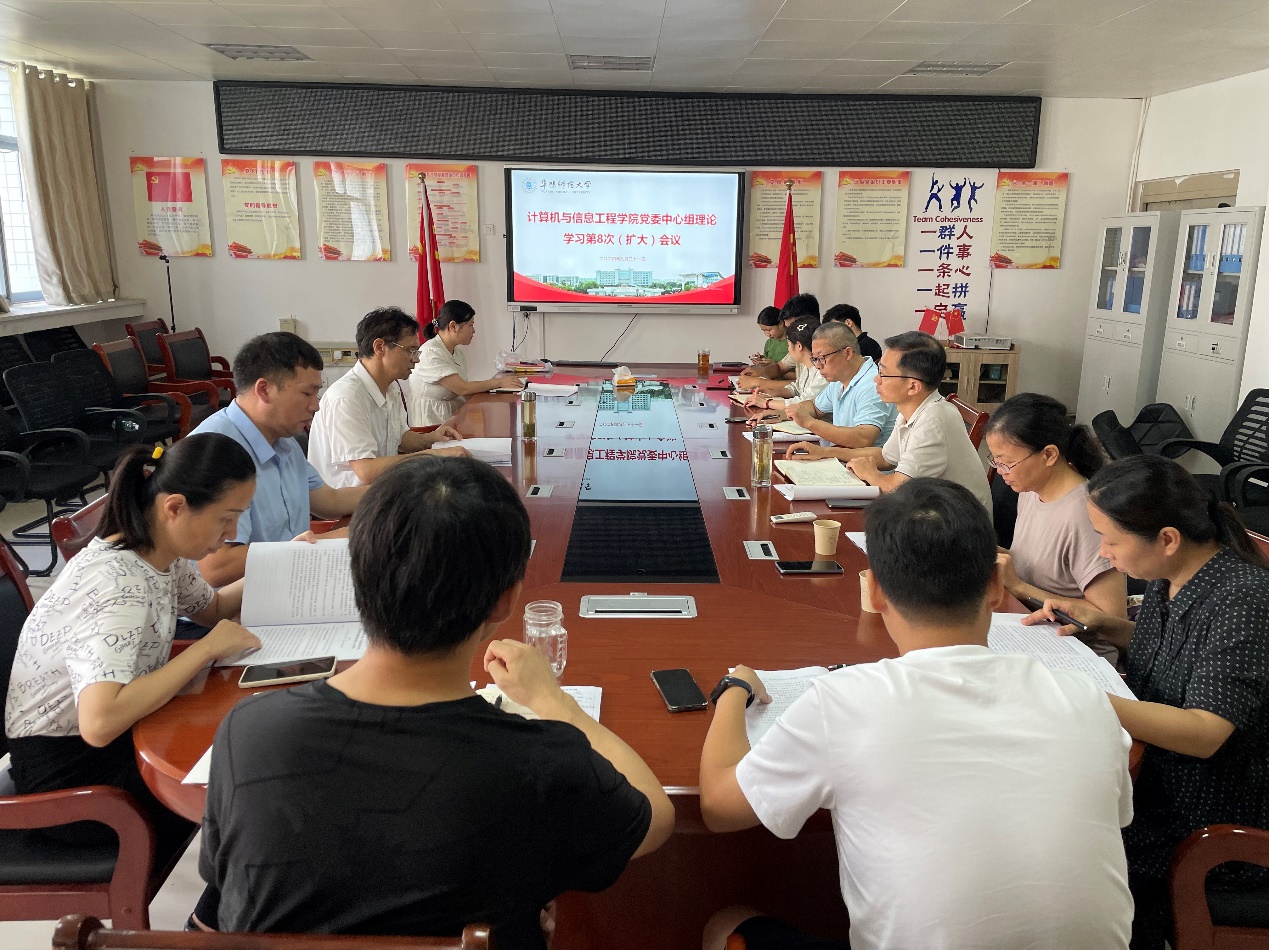 8月31日上午,计算机与信息工程学院在躬行B楼202会议室召开学院第八次党委理论学习中心组(扩大)会议,专题学习党的二十届三中全会精神。党委理论学习中心组成员、党支部书记、全体辅导员参加会议。会议由党委书记吴尝主持。