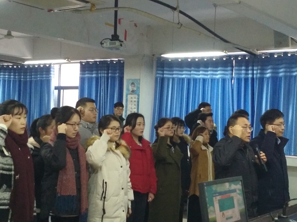 2019年1月4日,计算机与信息工程学院党委于躬行楼B楼306会议室举行新党员宣誓大会。学院党委书记朱明山、党委副书记王永刚、学生党支部书记岳申,徐悦,韩天鹏,吴杏梅,杨莉莉、新发展党员、入党积极分子代表及老党员代表出席此次大会。本次大会由学院党委秘书岳申主持。