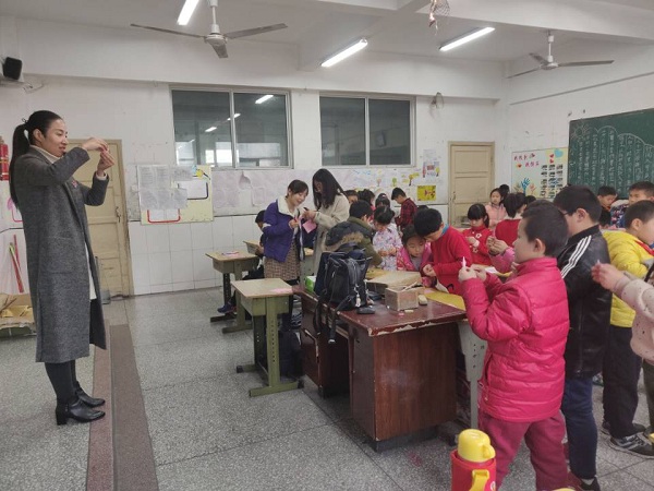 为扎实推进“两学一做”学习教育常态化制度化和基层党组织标准化建设,积极开展党员志愿服务活动,12月3日上午计算机与信息工程学院计科专业学生第一党支部书记岳申和支部学生党员到附属小学三年级1班开展手工制作活动。