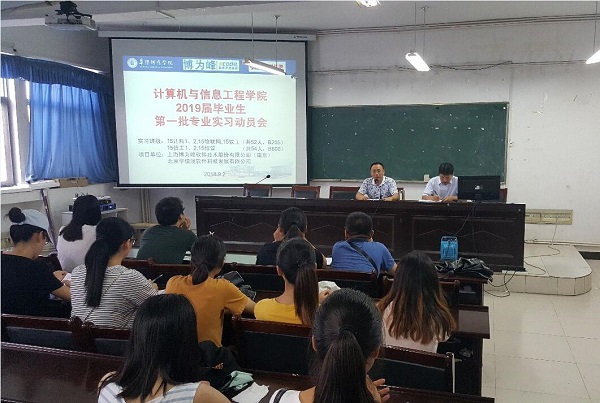2018年9月2日,计算机与信息工程学院在躬行B楼306教室召开了学院2019届毕业生第一批专业实习动员会。学院党委书记朱明山、副院长王峰、部分实习指导老师和参加第一批实习的2019届毕业生参加会议。动员会由实习负责人王浩主持。