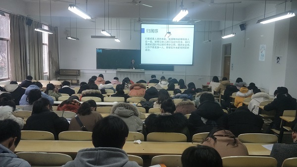 12月8日与9日上午9点,在主楼111与113教室由朋辈辅导员范传兰、刘雪静、于胜男分别讲授校级选修课:观心——人际沟通、不止寝室情——寝室关系、以梦为马随处可栖——环境适应、别和学习分道杨彪——时间管理、滚蛋吧!烦劳君——情绪管理、Friend Plus--团队管理等课程。
