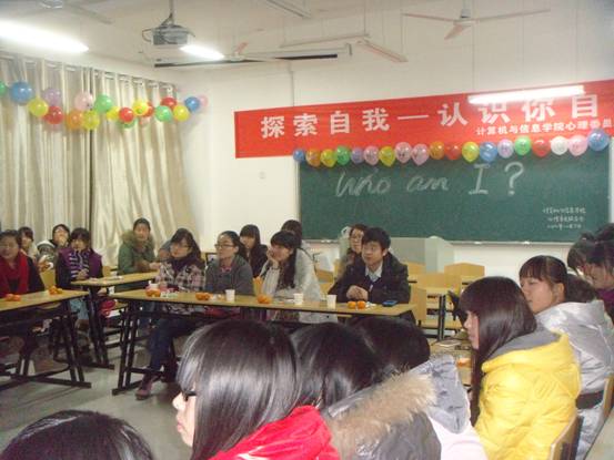 12月7日晚7点,计算机与信息学院在D楼610举办了“探索自我-认识你自己”心理沙龙活动,计算机与信息学院心理辅导员徐悦老师、各学院心联主席、各班级心理委员和学生代表共60余人参加了活动。