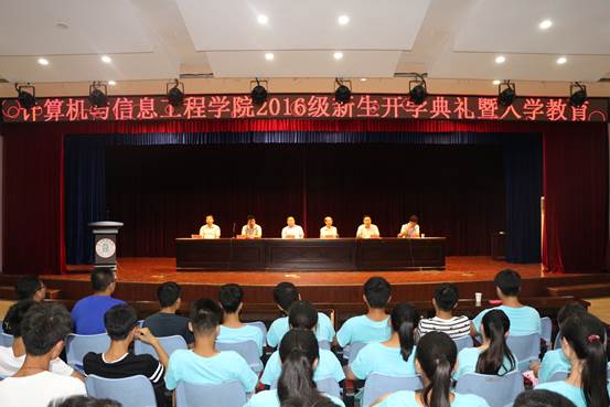 在庄严的国歌声中,开学典礼拉开了帷幕。首先由朱明山书记致辞,他向2016级新生表示衷心的祝贺,并勉励同学们珍惜在校的时光,培养学习精神、批判精神、创造精神和社会关怀精神,同时也在学习,工作,生活方面对新生提出了期望和要求。随后王戴木院长从学院发展,专业介绍,实践教学三个方面介绍了我院的基本情况,着重介绍了师资队伍,软硬件实验室的优势。紧接着教师代表韩波老师从目标的树立、大学学习的特点、品行修养的提升表达了对同学们的殷切期望,勉励大学生能够规划好自己的大学生活,让大学岁月能够成为人生中最温暖的记忆。老生代表李亮亮、新生代表孙智娟代表学生发言,她们分别结合个人经历,与新生分享了自己对大学生活的理解,畅谈了对大学的憧憬和梦想。最后,知名校友刘洁与新生交流,分享自己曲折的人生经历,以及专业学习方面的心路历程,同时也对软件企业人才的需求做了分析。
