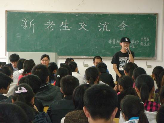 为了让2011级新生更快地适应大学生活,更好地投入到学习中去,阜阳师范学院计算机与信息学院于2011年10月15日上午九点在实验B楼103教室举办了新老生交流会。