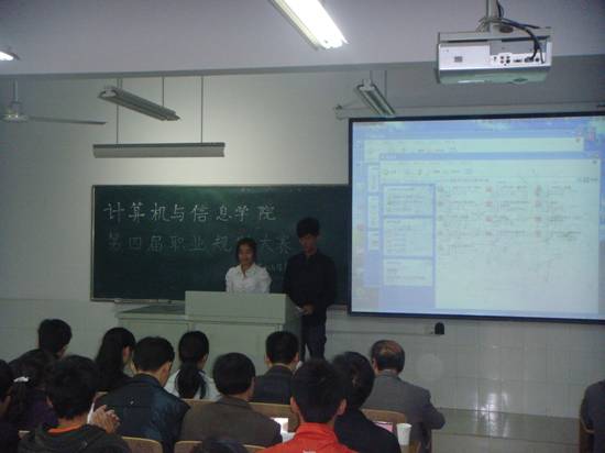 为了引导同学们明确定位自己的发展方向,发掘自身的潜能,提高自己的就业竞争力和综合素质,计算机与信息学院团总支学生会于2011年10月16日在实验楼A楼303教室隆重举行计算机与信息学院第四届大学生职业生涯规划大赛。