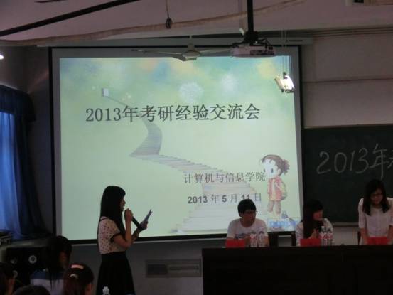 为使广大同学深入了解考研信息,加强我院学风建设,充分调动学生们的学习积极性和主动性,明确自己的考研方向和发展前景,合理规划未来,计算机与信息学院于5月11日下午举办了考研经验交流会。