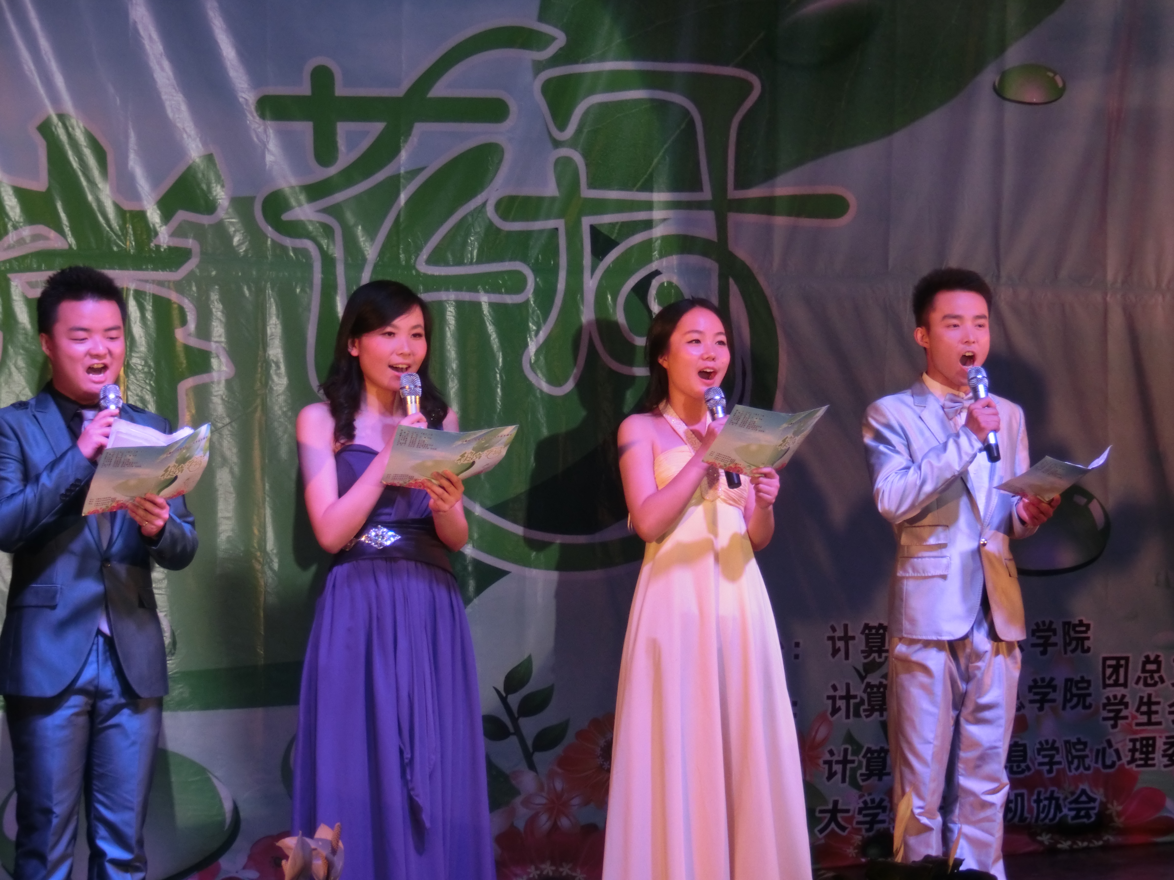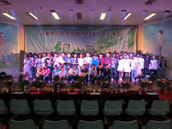 2013年5月11日晚7点,计算机与信息学院在西湖校区小礼堂隆重举办以“彼岸花开”为主题的送毕业生晚会。计算机与信息学院党总支副书记于少华、副院长王峰、团总支书记徐悦及各位辅导员老师莅临本场晚会并和现场四百多名学生一起观看了整场晚会。