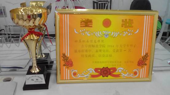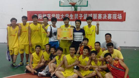 在长达一个多月的校级篮球比赛中,我院大学生男子篮球代表队经过初赛的筛选、复赛的角逐、决赛的拼搏,荣获“阜阳师范学院2014年大学生男子篮球联赛”冠军。