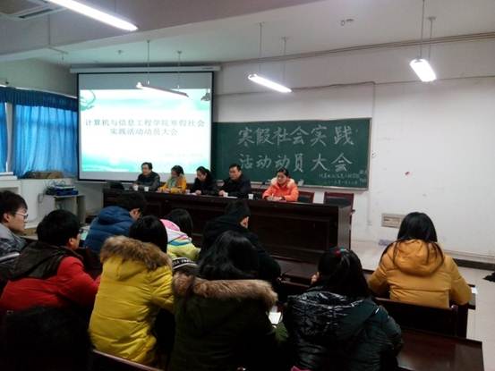 计算机与信息工程学院于2015年1月12日下午在实验B306举行“2015年大学生寒假社会实践活动”动员大会。院党总支书记朱明山、团总支书记徐悦、各年级辅导员以及各年级骨干学生出席了本次会议。