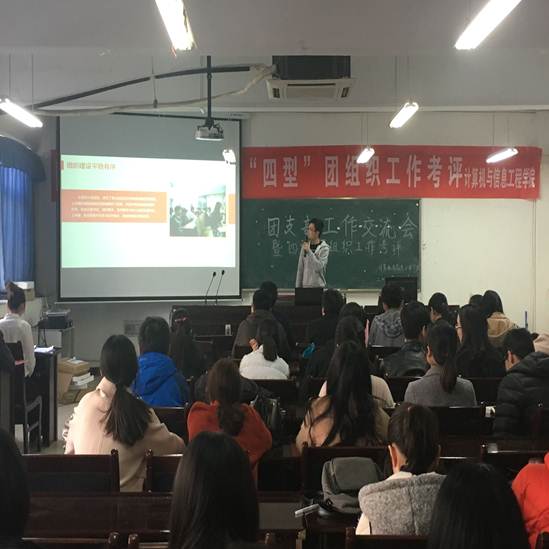 进一步加强我校基层团组织建设,不断提升共青团工作水平和层次,我院于2017年3月26日下午在B306开展“四型”团组织工作考评,本次考评工作的评委有院党总支副书记王永刚,团总支书记徐悦,学生辅导员岳申、吴杏梅。