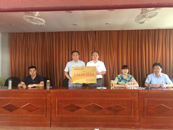 2017年7月1日上午,阜阳师范学院计算机与信息工程学院党总支书记朱明山、副书记王永刚、副院长王诗兵、团总支书记徐悦、党总支秘书岳申一行五人来到界首市任寨乡,与界首市任寨乡党委书记夏杰、乡长曹兰芳、乡政府工作人员以及学生志愿者共同参加了暑期 “三下乡”社会实践基地揭牌仪式。揭牌仪式设在任寨乡政府会议厅,由王永刚主持。