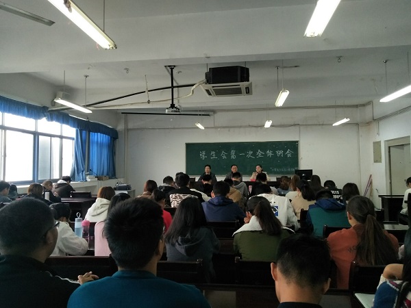 大会第二项,由学生会主席黄书豪对近期工作进行安排与总结,同时介绍了各部门部长,简要叙述了以后的工作计划和思路,为学生会进一步的工作指明了方向,其他各位主席也分别介绍自己所分管的部门的工作情况并热心的分享了他们在学生会经历与收获,并对新一届部员提出了建议和要求。最后,黄书豪对本次的会议作了总结,会议在大家的掌声中圆满结束。