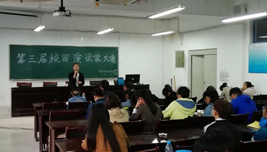 炫我青春,魅力计信。为展现我校大学生蓬勃的朝气,青春的自信和自强的精神风貌,计算机与信息工程学院于4月15日下午在B楼306成功举办了第三届校园演说家大赛。出席本次大赛的评委有绿色环保社执行长陈成、校级礼仪风采大赛三等奖获得者刘诗涵以及该院学生会实践部部长张晨晨。