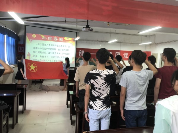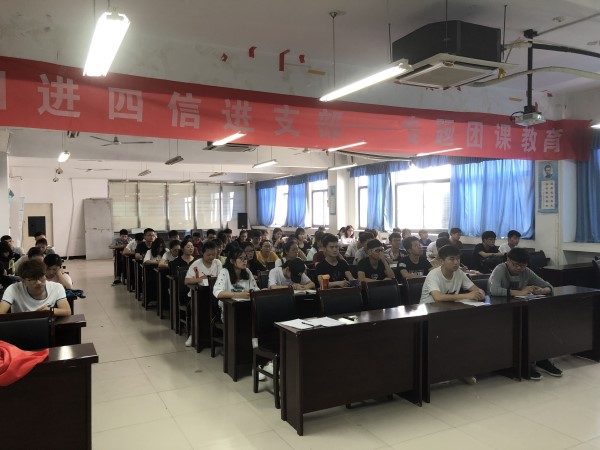 为宣传贯彻习近平总书记系列重要讲话精神,进一步加大对团员青年、团学干部的培养教育力度,培养高素质人才。计算机与信息工程学院于5月17日在躬行楼B楼306进行了“四进四信进支部——专题团课教育”活动,我院党委副书记王永刚、2015级-2017级各班级班长、团支部书记、团支部副书记、宣传委员、组织委员以及2018年度新入团的团员共同参加了此次活动。