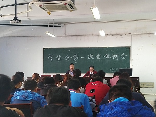 首先,王永刚向全体学生会成员的到来表示热烈的欢迎。随后,他结合自身的经历和感悟向大家明确提出学生会服务全院学生的宗旨,以及在学生会工作应具备的三点基本意识:一是有进取意识,要学会积极主动地完成自身的工作和帮助他人;二是有规矩意识,要牢记校规校纪,严格按照要求办事;三是有责任和担当意识,要敢想敢做并知错能改。同时,王永刚也提了两点宝贵的意见:一是要学会与他人建立良好的沟通和交流;二是要求全体成员在以后工作开展中要提升服务能力。接着,徐悦结合上一届学生会的成绩向新一届学生会表达了美好的期冀,鼓励大家再续辉煌。最后,主席团成员对近期工作开展进行总结,详细介绍本学期的工作计划和思路,并结合自身大学的经历向学生会成员分享了成长心得。