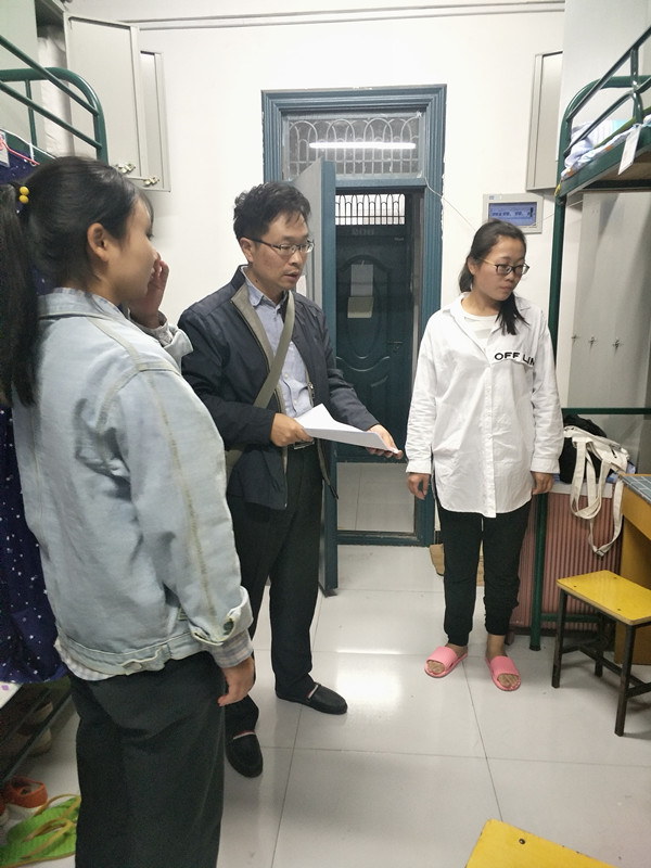 为加强学生安全防范意识,排除宿舍潜在安全隐患,11月1日晚,计算机与信息工程学院党委书记朱明山,副院长王诗兵、王峰、副书记王永刚,团总支书记徐悦,党委秘书岳申,专职辅导员吴杏梅、杨莉莉以及学院学生会成员深入我院所在学生寝室针对违章电器进行检查走访。