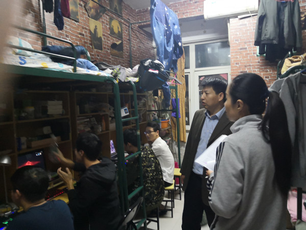 走访期间,学院老师向同学们特别强调宿舍用电安全的重要性,尤其是违规使用高功率电器以及私自乱接电线对自身安全的危害性,并希望同学之间互相监督,互相爱护,为创建一个文明安全的宿舍环境共同努力。切实强化自我教育、自我管理,真正认识到违规用电、使用违规电器等行为的严重危害性与潜在的安全隐患。本次检查,整体情况较好,但是安全隐患依然存在,小小的隐患也能引起大的事故,希望全体同学能够引起重视,以此为契机,自检自查,警钟长鸣,杜绝安全事故的发生。