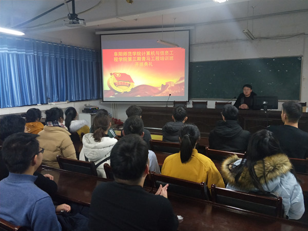 为不断提高大学生骨干、团干部、青年知识分子等青年群体的思想政治素质、政策理论水平、创新能力、实践能力和组织协调能力,使他们进一步坚定跟党走的中国特色社会主义道路的信念,成长为中国特色社会主义事业的合格建设者和可靠接班人。2018年11月20日,计算机与信息工程学院于躬行楼B楼306会议室召开第三期青马工程培训开班仪式。在该院团总支书记徐悦老师的精心组织和筹备下,该院学生会主席丁哲及2018级团支部委员共30人参与了本次会议。会议由丁哲主持。
