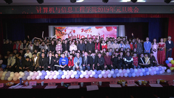 新年伊始,万象更新。在这个辞旧迎新的时刻,计算机与信息工程学院于12月27日晚在小礼堂举办“Hello World”2019年元旦晚会。学院党委书记朱明山,副院长王诗兵、王峰,党委副书记王永刚,团总支书记徐悦,党委秘书岳申,辅导员杨莉莉,教师代表王亚、赵佳、毕学慧、范国婷、侯大有、刘天琪以及近400名学生观看了本场晚会。