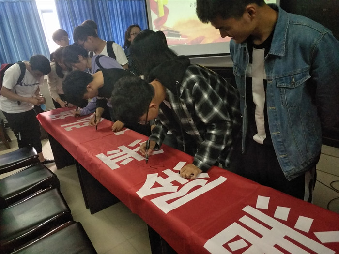 会上,该院团总支副书记汪威首先带领各班级团干部再次学习了学校有关开展扫黑除恶专项行动的文件要求,并带领大家观看了扫黑除恶宣传片,明晰了黑恶势力在校园和社会的表现形式,提醒大家要增强安全防范意识,坚决与黑恶势力作斗争,弘扬社会正气。最后,团干部进行了“扫黑除恶,弘扬正气”签名活动。