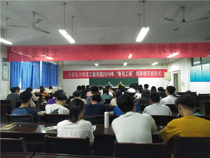 为深入学习贯彻党的十九大精神,促进团干部了解自身职责,提高学生干部政治素养,在新时期加强对青年团员的培养教育,2019年5月11日上午,计算机与信息工程学院于躬行楼B楼召开2019年“青马工程”培训班开班仪式,计算机与信息工程学院党委副书记王永刚、团总支书记徐悦出席了本次仪式,参加开班仪式的还有学生会主席团、团总支委员会成员、大一各班级团干部以及2019年度计划入团的青年学生。开班仪式由徐悦主持。