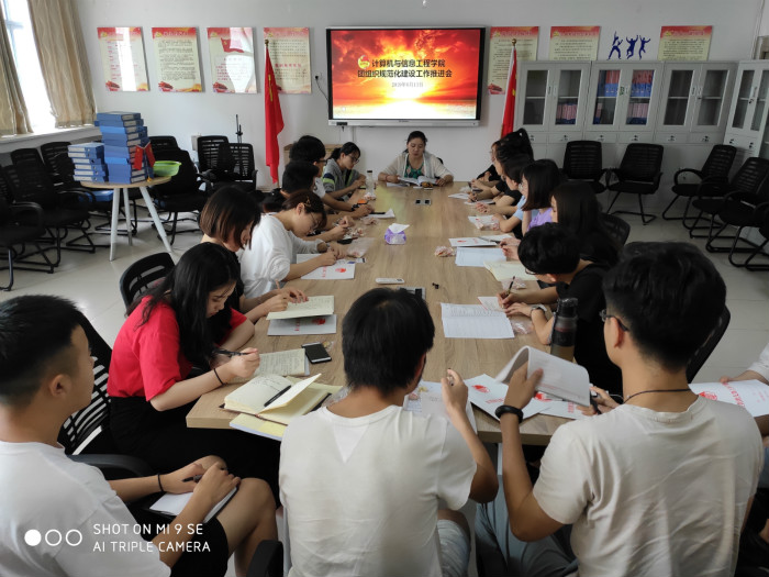 为深入贯彻习近平总书记“7·2”重要讲话精神和团十八大、团十八届二中全会精神,进一步落实《基层团组织规范化建设工作的实施方案》、《关于加强新时代团的基层建设 着力提升团的组织力的意见》、《关于在全省开展基层团组织整理整顿工作的通知》等文件要求,加强基层团组织规范化建设提升工作,深入推进从严治团要求,2019年6月13日中午,计算机与信息工程学院团总支于躬行楼B楼202会议室召开团组织规范化建设工作推进会。该院团总支书记徐悦、团总支委员会成员、各班级团支部书记出席本次会议。会议由徐悦主持。