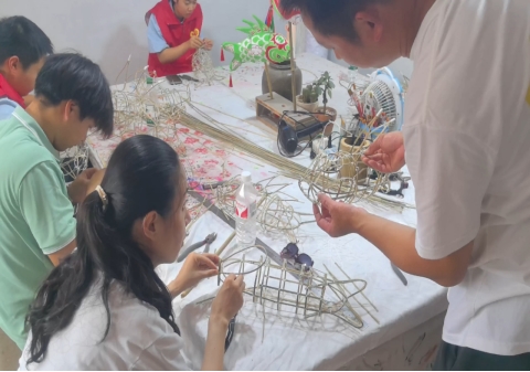 实践采取“守”与“创”双线并行。一支分队携鱼灯赴合肥社区展演,让跨越百年的鱼灯游进现代楼宇,通过“摸摸鱼头,万事不愁”等互动,突破地域与年龄边界,激活传统习俗的生命力。另一分队扎根工坊,学习砍竹选材、扎架蒙布、装饰上色等精细工序,深度挖掘鱼灯制作匠心密码,同时为文创设计收集鲜活素材。团队还深受“忠孝里”所承载的忠孝精神震撼。